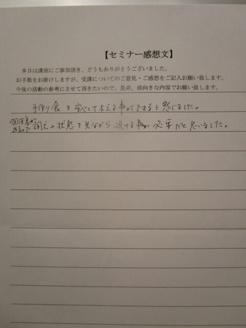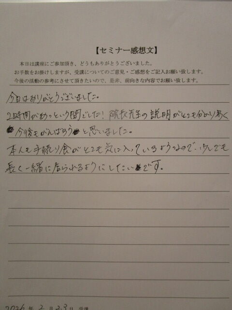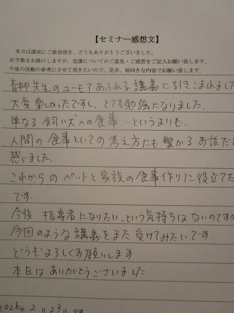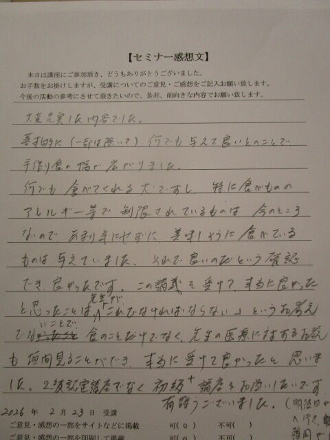 2026.03.01 2月23日手作りごはん入門講座参加者の感想です。 今回は12名の参加でお部屋いっぱいになっていました。 それぞれみなさん抱えている問題があって質問が絶えませんでした。 みなさんが安心して手作りごはんを始めるまたは続けられるようになってよかったよかった(^^♪